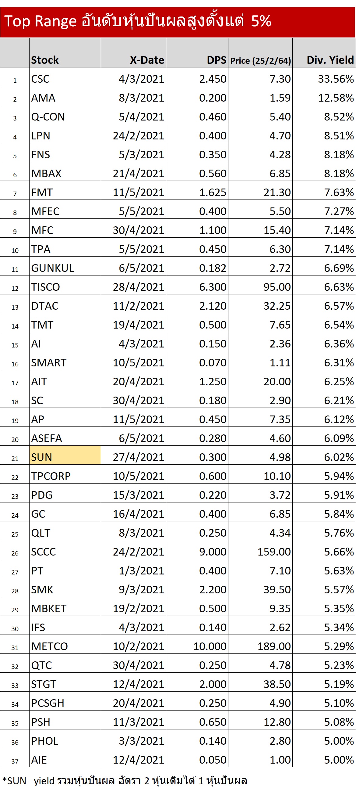 Top Range อันดับหุ้นปันผลสูงตั้งแต่ 5%