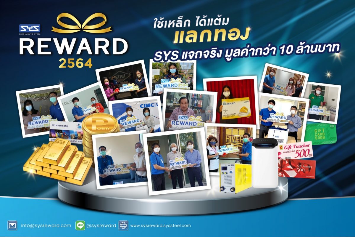 “SYS ได้จัดแคมเปญ SYS Reward มาต่อเนื่อง โดยปีนี้เป็นปีที่ 7แล้ว นับเป็นกิจกรรมส่งเสริมการขายที่มุ่งตอบแทนลูกค้าคนสำคัญที่ได้ให้ความไว้วางใจเลือกใช้ผลิตภัณฑ์เหล็กเอชบีม ไวด์แฟลงก์ที่มีคุณภาพ ได้มาตรฐาน โดยแคมเปญฯดังกล่าวมีรางวัลพิเศษต่าง ๆ มากมาย ไม่ว่าจะเป็น ทองคำแท่ง บัตรกำนัล บัตรเติมน้ำมัน เครื่องเชื่อมไฟฟ้า เครื่องฟอกอากาศ รวมมูลค่ากว่า 10 ล้านบาท และในปีนี้ SYS ยังคงเดินหน้าจัดแคมเปญ SYS Reward อย่างต่อเนื่อง โดยมีรางวัลพิเศษอีกเช่นเคย ส่วนระยะเวลาเข้าร่วมโปรแกรมจะเป็นช่วงใดนั้นจะมีการประชาสัมพันธ์ให้ทราบอีกครั้ง” นายพงษ์ศักดิ์ กล่าว