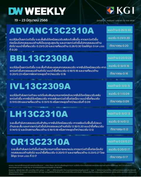 ระยะกลางคาด S50M23 แกว่งตัว ระยะสั้นเป็นบวกมากขึ้นหลังจากสามารถยืนได้เหนือ 930 ประเมินแนวรับ 943/930/920 และแนวต้าน 957/965 หากยืนได้เหนือ 943 อาจแกว่งตัวขึ้นไปแนวต้านที่ 957/965 หากยืนไม่ได้เหนือ 943 อาจแกว่งตัวลงไปที่ 930/920