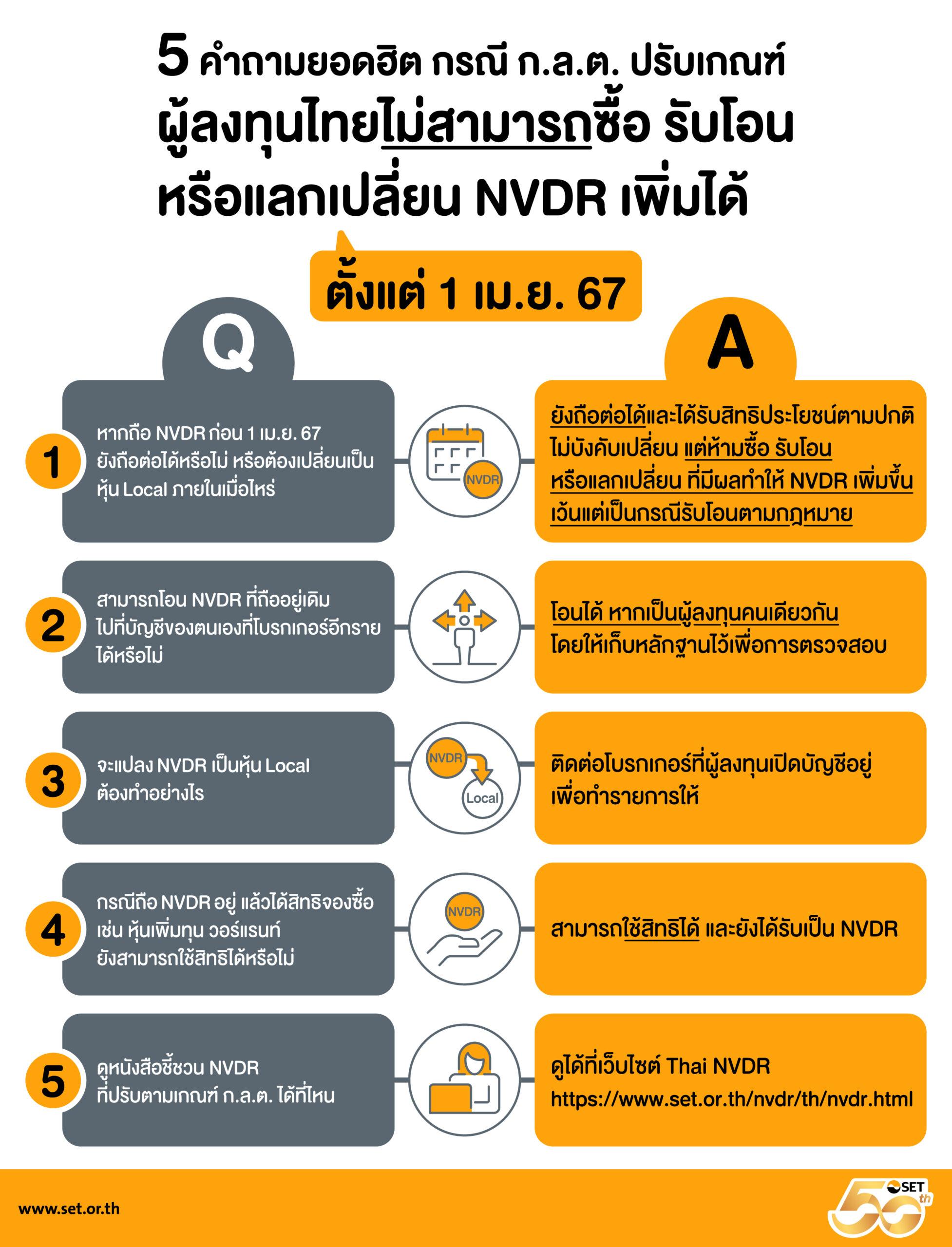 5 คำถามยอดฮิต กรณี ก.ล.ต. ปรับเกณฑ์ ผู้ลงทุนไทยไม่สามารถซื้อ รับโอน หรือแลกเปลี่ยน NVDR เพิ่มได้