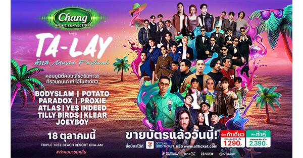 “Chang Music Connection Presents Ta-Lay Music Festival” จัดขึ้นในวันที่ 18 ตุลาคม 2568 ที่ Triple Tree Beach Resort ชะอำ เปิดจำหน่ายบัตรแล้ววันนี้ที่ 7/11 ทุกสาขา และ www.allticket.com ในราคาเพียง 1,290 บาท (จากปกติ 2,390 บาท) คุ้มสุดๆ กับบัตรคอนเสิร์ตแพ็คคู่ 2 ใบ ในราคา 2,390 บาท พิเศษ! สามารถผ่อนชำระค่าบัตรคอนเสิร์ตได้ตั้งแต่วันที่ 8 กันยายน 2568 เป็นต้นไป ผ่าน All Ticket เมื่อมียอดซื้อ 1,500 บาทขึ้นไป **เงื่อนไขเป็นไปตามธนาคารกำหนด ติดตามรายละเอียดเพิ่มเติมได้ที่ https://www.facebook.com/talaymusicfest