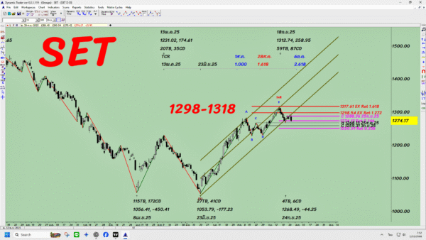 3.2 วัดทางลงด้วย Fibonacci ชุดสีม่วง ตำแหน่งย่อสั้นสุดคือ 14.6 พิกัด 1274.13 ล่าสุด ตลาดปิดที่ 1274.17