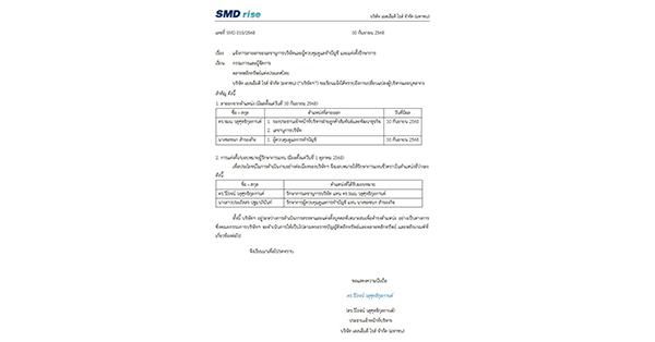 บริษัท เอสเอ็มดีไรส์ จำกัด (มหาชน) (SMD100) ปรับโครงสร้างผู้บริหาร เพื่อเตรียมความพร้อมในการ Spin-off บริษัท เอสเอ็มดี สัปปายะ จำกัด (SMD10)