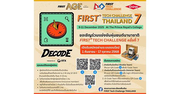 มิติหุ้น – กลุ่มบริษัท ดาว ประเทศไทย (Dow) และพันธมิตร เปิดรับสมัครผู้ท้าชิงที่กำลังศึกษาอยู่ในระดับชั้น ม.1-ม.6 หรือเทียบเท่า ร่วมสร้างทีมจำนวน 415 คน (ควรมีสมาชิกผู้หญิงอย่างน้อย คน (inclusive member)  เพื่อส่งเสริมความหลากหลายเพื่อเข้าร่วมการแข่งขันหุ่นยนต์ FIRST® Tech Challenge Thailand ครั้งที่ มุ่งสร้างเครือข่ายการเรียนรู้ STEM Education พัฒนาผู้เรียนด้านทักษะกระบวนการคิด การแก้ปัญหา การออกแบบ และการสร้างสรรค์นวัตกรรมเพื่อพิชิตภารกิจในหัวข้อ “DECODE Presented by RTX” ระหว่างวันที่ 9-11  ธันวาคม 2568 ณ โรงเรียนปรินส์รอยแยลส์วิทยาลัย จ.เชียงใหม่