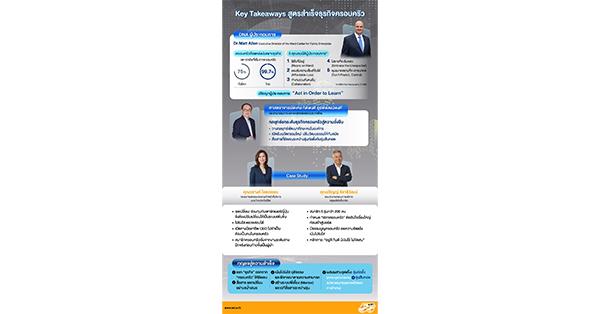 • Startup ทั่วโลกส่วนใหญ่ก่อตั้งจากสมาชิกครอบครัว โดยเฉพาะในประเทศไทยที่ 99.7% ของ startup ในประเทศไทยเริ่มต้นโดยครอบครัว มากกว่าค่าเฉลี่ยทั่วโลกที่อยู่ที่ 75% และมีผลการศึกษาที่ยืนยันว่า “การอยู่ในธุรกิจครอบครัวส่งผลให้สมาชิกครอบครัวอยากมีธุรกิจของตนเอง” และ “การที่พ่อแม่ทำธุรกิจจะมีอิทธิพลให้ลูกอยากเริ่มธุรกิจมากกว่าปัจจัยด้านอื่นๆ ยิ่งพ่อแม่ชื่นชอบในการประกอบการ ลูกยิ่งมีแนวโน้มที่จะชื่นชอบมากขึ้น และยิ่งเพิ่มขึ้นไปอีกหากในครอบครัวมีการสื่อสารกันอย่างมีประสิทธิภาพ”