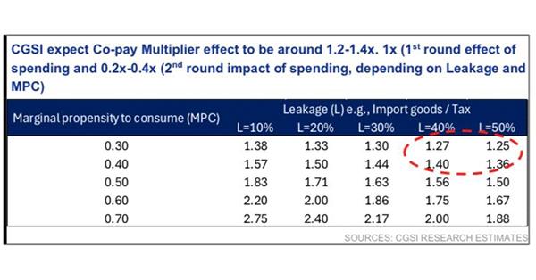 “แบงค์ชาติและคลังมองตัวคูณ (Multiplier effect) ของการแจกเงินไม่ถึง 1x หรือแค่ราว 0.4x-0.9x … แต่ Mr. Market มองว่า “คนละครึ่ง” ไม่ใช่การแจกเงินปกติ”