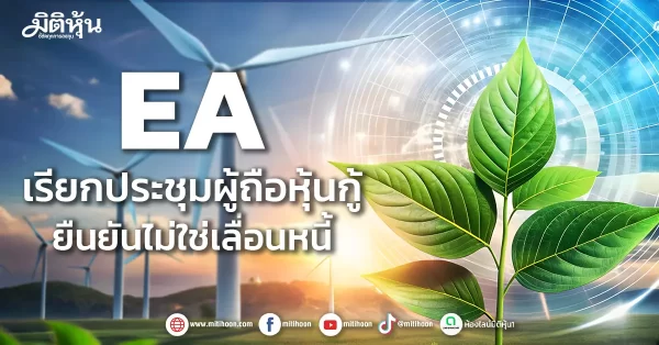 มิติหุ้น – มีรายงานข่าวว่า บริษัท พลังงานบริสุทธิ์ จำกัด (มหาชน) หรือ EA ได้ปิดสมุดทะเบียนผู้ถือหุ้นกู้ทุกชุด เพื่อเตรียมเรียกประชุมใหญ่อีกครั้ง  โดยรอบนี้ EA ตั้งใจมาขอ “ขยายกรอบเวลา” ในการเจรจากับสถาบันการเงินเท่านั้น โดยมีวัตถุประสงค์หลัก 2 เรื่อง