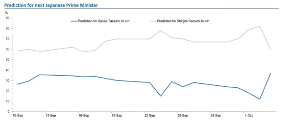 - หลังทราบผลการเลือกหัวหน้าพรรค LDP คนใหม่ ตลาดหุ้นญี่ปุ่นปรับตัวขึ้น ขณะที่ค่าเงินเยนอ่อนค่าลง รวมถึง yield curve ชันมากขึ้น จากการที่ตลาดคาดการณ์ถึงแรงหนุนด้านนโยบายการคลังที่มีแนวโน้มขยายตัวมากขึ้น และปรับลดโอกาสที่ BoJ จะขึ้นอัตราดอกเบี้ยนโยบายในการประชุมเดือนนี้ลง เนื่องจากคุณ Sanae Takaichi เป็นผู้สนับสนุนแนวทาง Abenomics โดยเธอสนับสนุนนโยบายการคลังเชิงรุกและนโยบายการเงินผ่อนคลายเพื่อขับเคลื่อนเศรษฐกิจ ส่งผลให้นโยบายการคลังของญี่ปุ่นในระยะต่อไปมีแนวโน้มผ่อนคลายมากขึ้น ซึ่งคาดว่าจะเป็นผลดีต่ออุปสงค์ในประเทศ