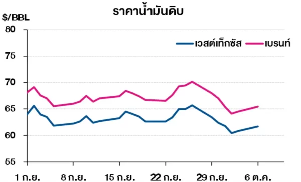 (+/-) ราคาน้ำมันดิบถูกหนุนในระยะสั้นจากการปรับเพิ่มกำลังการผลิตของกลุ่มโอเปกพลัสต่ำกว่าที่ตลาดคาดการณ์ โดยการประชุมของกลุ่มโอเปกพลัสในวันที่ 5 ต.ค. 68 มีมติปรับเพิ่มกำลังการผลิตในเดือน พ.ย. 68 อยู่ที่ 137,000 บาร์เรลต่อวัน ซึ่งเป็นปริมาณที่ต่ำกว่าตลาดคาดการณ์ โดยก่อนหน้ากลุ่มโอเปกพลัสได้เริ่มยกเลิกการ ปรับลดกำลังการผลิตปริมาณ 1.65 ล้านบาร์เรลต่อวันตั้งแต่เดือน ต.ค. โดยทยอยปรับเพิ่มขึ้น 137,000 บาร์เรลต่อวัน แต่ทั้งนี้ตลาดมองว่าปริมาณน้ำมันจริงอาจเข้าสู่ตลาดน้อยกว่าที่คาด เนื่องจากสมาชิกโอเปกพลัสบางส่วนได้ผลิตน้ำมันจนเต็มกำลังการผลิตแล้ว