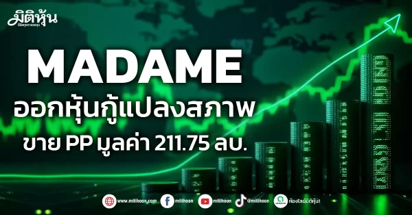 มิติหุ้น- บมจ.มาดาม ไบโอไซเอนซ์ หรือ MADAME แจ้งตลท. ว่า บริษัทได้ออกและเสนอขายหุ้นกู้แปลงสภาพที่ออกใหม่ของบริษัทให้แก่บุคคลในวงจำกัด(PP) คือ Orion Global Partners Investment Management Limited หรือ ORION มีมูลค่าการเสนอขายจำนวน 211.75 ลบ. บาท จํานวนทั้งหมด 211,750 หน่วย ราคาเสนอขาย 1,000 บาทต่อหน่วย ซึ่งหุ้นกู้แปลงสภาพดังกล่าว จะครบกําหนดในวันที่ 2 ตุลาคม 2573 เว้นแต่จะมีการใช้สิทธิแปลง สภาพก่อนครบกําหนดไถ่ถอน