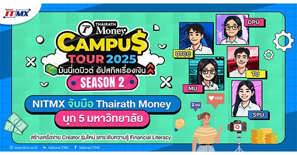 โครงการ Thairath Money Campus Tour 2025 คาดว่าจะมีนักศึกษาเข้าร่วมรวมกว่า 5,000 คนจากมหาวิทยาลัยทั้ง 5 แห่ง ถือเป็นการต่อยอดสร้างเครือข่าย Creator การเงินรุ่นใหม่ ที่จะช่วยปลุกพลัง Financial Literacy ให้เข้มแข็งและแพร่หลายมากขึ้นในสังคมไทย ซึ่งทั้งหมดนี้ตอกย้ำบทบาทของ NITMX ในการขับเคลื่อน ระบบการเงินดิจิทัลที่ปลอดภัย มั่นคง และเข้าถึงง่าย ควบคู่ไปกับการสร้างสังคมที่รู้เท่าทันภัยการเงินในโลกออนไลน์