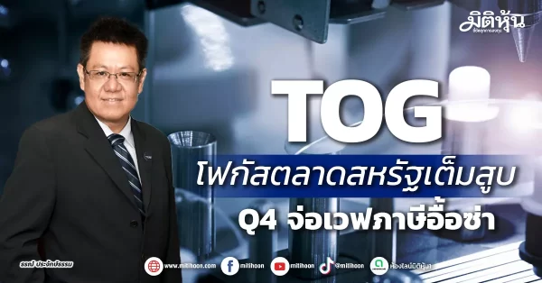 มิติหุ้น – TOG เล็งปรับทัพใหญ่โฟกัสตลาดสหรัฐหวังได้ลดหย่อนภาษีเพิ่ม คาดชัดเจน Q4นี้ ช่วยหนุนยอดขายฟื้น แย้มตลาดใหม่ก็ยังเดินหน้าโดยเฉพาะ ตะวันออกกลาง แคนาดา จีน และญี่ปุ่น