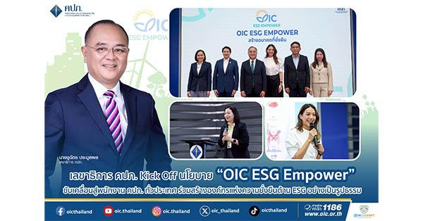 เลขาธิการ คปภ. กล่าวว่า สำนักงาน คปภ. ในฐานะหน่วยงานกำกับดูแลภาคธุรกิจประกันภัยของประเทศ มีบทบาทสำคัญในการขับเคลื่อนเศรษฐกิจและสังคมไทยให้เติบโตอย่างมั่นคงและยั่งยืน การนำหลัก ESG มาบูรณาการในทุกกระบวนการทำงาน จึงไม่ใช่เพียงนโยบาย แต่คือ “แนวทางการบริหารจัดการที่ต้องลงมือทำจริง” ทั้งในระดับนโยบายและระดับปฏิบัติ เพื่อให้ทุกการตัดสินใจ ทุกโครงการ และทุกนโยบายของ คปภ. สะท้อนถึงความยั่งยืนอย่างแท้จริง โดยกำหนดนโยบาย OIC ESG Empower ใน 3 มิติ ได้แก่