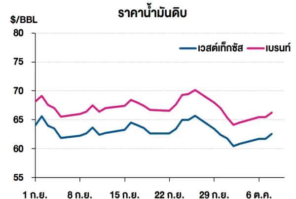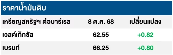 (+) ราคาน้ำมันดิบปรับเพิ่มขึ้น หลังสำนักงานสารสนเทศด้านพลังงานของสหรัฐฯ (EIA) เผยความต้องการใช้น้ำมันของสหรัฐฯ ประจำสัปดาห์สิ้นสุด ณ วันที่ 3 ต.ค.68 อยู่ที่ระดับ 21.9 ล้านบาร์เรลต่อวัน ซึ่งถือเป็นระดับสูงที่สุดนับตั้งแต่เดือน ธ.ค. 65