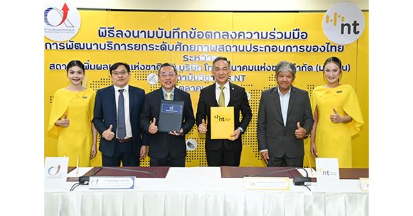 มิติหุ้น – บริษัท โทรคมนาคมแห่งชาติ จำกัด (มหาชน) หรือ NT ลงนามบันทึกข้อตกลงความร่วมมือ ว่าด้วยการพัฒนาบริการยกระดับศักยภาพสถานประกอบการของไทย กับ สถาบันเพิ่มผลผลิตแห่งชาติ เพื่อผนึกกำลังในการส่งเสริมสนับสนุนการยกระดับทักษะด้านเทคโนโลยีดิจิทัลให้แก่บุคลากรในภาคส่วนต่าง ๆ ให้มีความพร้อมทางด้านดิจิทัล สามารถเป็นกำลังหลักในการเปลี่ยนผ่านองค์กรไปสู่ดิจิทัลได้อย่างยั่งยืน โดย พันเอก สรรพชัยย์ หุวะนันทน์ กรรมการผู้จัดการใหญ่ บริษัท โทรคมนาคมแห่งชาติ จำกัด (มหาชน) และนายสุรเชษฎ์ พลวณิช รักษาการผู้อำนวยการสถาบันเพิ่มผลผลิตแห่งชาติ ร่วมลงนาม โดยมีวัตถุประสงค์เพื่อยกระดับบุคลากรและผู้ประกอบการให้มีความรู้ ทักษะ และสมรรถนะที่สอดคล้องกับสถานการณ์ปัจจุบัน ด้วยการผสานจุดเด่นและความเชี่ยวชาญของทั้งสองหน่วยงานและสร้างโอกาสทางธุรกิจผ่านการดำเนินกิจกรรมการตลาดร่วมกัน ณ ห้องประชุม 1 ชั้น 3 อาคารกาญจนาภิเษก สถาบันวิชาการ อำเภอเมืองนนทบุรี จังหวัดนนทบุรี เมื่อวันที่ 7 ตุลาคม 2568 ที่ผ่านมา