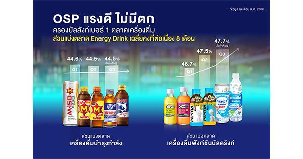 OSP แรงดี ไม่มีตก ครองบัลลังก์เบอร์ 1 ตลาดเครื่องดื่ม ส่วนแบ่งตลาด Energy drink เฉลี่ยคงที่ต่อเนื่อง 8 เดือน