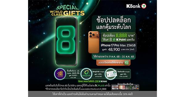 บัตรเครดิตกสิกรไทย จัดต่อเนื่องแคมเปญ WORLD CLASS GIFTS จัดโปรฯ พิเศษ ช้อปครบ 8,888 บาท* ได้สิทธิ์ใช้ 8 K Point แลกสินค้าแบรนด์ดัง