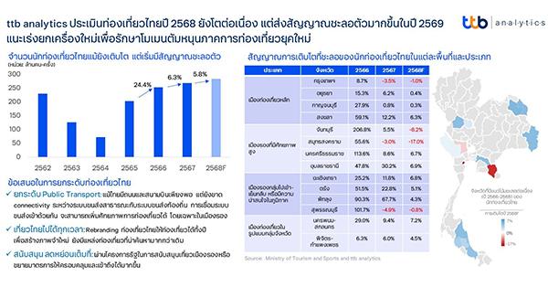 ttb analytics ประเมินท่องเที่ยวไทยปี 2568 ยังโตต่อเนื่อง แต่ส่งสัญญาณชะลอตัวมากขึ้นในปี 2569 แนะเร่งยกเครื่องใหม่เพื่อรักษาโมเมนตัมหนุนภาคการท่องเที่ยวยุคใหม่
