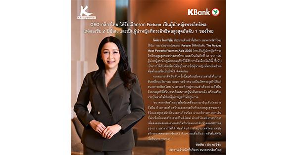 KBANK CEO ได้รับเลือกจาก Fortune เป็นผู้นำหญิงทรงอิทธิพลแห่งเอเชีย 2 ปีซ้อน และเป็นผู้นำหญิงที่ทรงอิทธิพลสูงสุดอันดับ 1 ของไทย