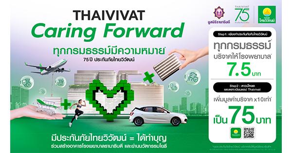 และในโอกาสก้าวสู่ปีที่ 75 บริษัทยังได้ริเริ่มแคมเปญเพื่อส่งต่อพลังแห่งการดูแลสังคม ผ่านแคมเปญ “ทุกกรมธรรม์มีความหมาย” ที่ขยายให้กับลูกค้ากรมธรรม์ประกันภัยทุกประเภท ที่มีค่าเบี้ยสุทธิตั้งแต่ 1,000 บาทขึ้นไป  ให้ได้มีส่วนร่วมในการช่วยเหลือสังคม เพียงลูกค้าซื้อหรือมีกรมธรรม์กับประกันภัยไทยวิวัฒน์ ทุกกรมธรรม์ บริษัทฯจะบริจาคเงินจำนวน 7.5 บาท ให้กับมูลนิธิรามาธิบดีฯ โครงการอาคารโรงพยาบาลรามาธิบดีและย่านนวัตกรรมโยธี เพื่อทดแทนอาคารเดิมที่ให้บริการมากว่า 50 ปี ซึ่งมีสภาพทรุดโทรมและไม่เพียงพอต่อการรองรับผู้ป่วย โดยอาคารใหม่นี้ ยังมีเป้าหมายในการเพิ่มศักยภาพการรักษาโรคซับซ้อน รวมถึงยกระดับคุณภาพบริการทางการแพทย์ให้ได้มาตรฐานสากล พร้อมรองรับสถานการณ์สุขภาพในอนาคตและการก้าวสู่ประชาคมอาเซียน ซึ่งจะถูกออกแบบเพื่อเป็นต้นแบบของนวัตกรรมการแพทย์และศูนย์กลางสุขภาพแห่งอนาคตของไทย ที่มีพื้นที่ใช้สอยรวมกว่า 278,000 ตารางเมตร สูง 25 ชั้น นอกจากนี้ลูกค้าประกันภัยไทยวิวัฒน์ยังสามารถเพิ่มมูลค่ายอดเงินบริจาคได้ถึง 10 เท่า จาก 7.5 บาท ให้เป็น 75 บาท เพียงดาวน์โหลด แอปพลิเคชัน Thaivivat ลงทะเบียนใช้งานสำเร็จ