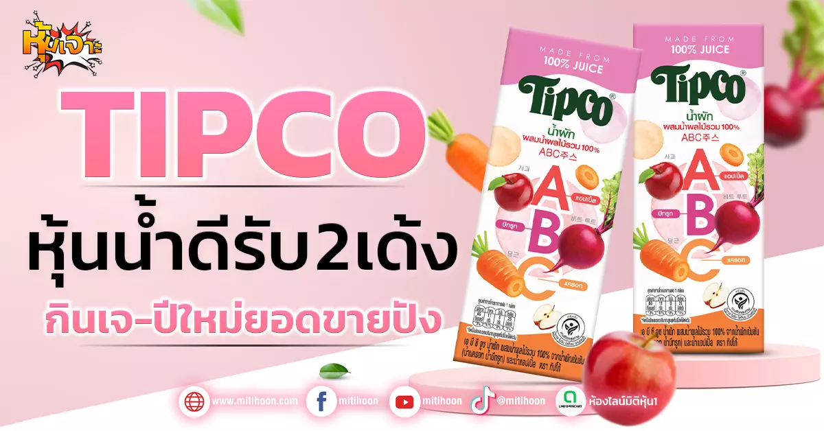 TIPCO หรือ บมจ.ทิปโก้ฟูดส์ โดย นักวิเคราะห์หลักทรัพย์ ระบุว่า ยอดขายของTIPCO ช่วงโค้งสุดท้ายจะได้ประโยชน์จากเทศกาลกินเจ และบวกแรงจากเทศกาลปีใหม่ช่วงปลายปี ซึ่งจะมีผลิตภัณฑ์ของTIPCO ในกระเช้าแสดงความยินดี