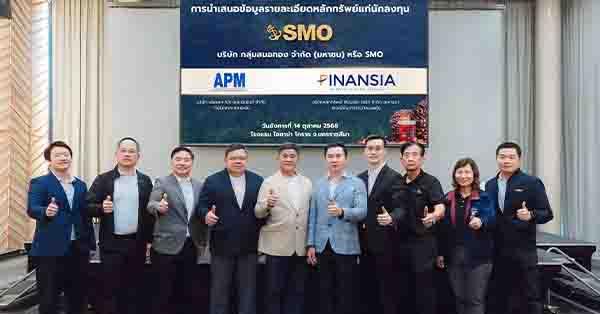 มิติหุ้น – นายกิตติพงษ์ พวงมาลา ประธานเจ้าหน้าที่บริหาร นายกุศล ศรีเปารยะ ประธานเจ้าหน้าที่บริหารการเงิน บริษัท กลุ่มสมอทอง จำกัด (มหาชน) หรือ SMO หนึ่งในผู้นำในการผลิตและจำหน่ายน้ำมันปาล์มดิบของประเทศไทย ซึ่งมีโรงงาน 4 จุดครอบคลุมพื้นที่ยุทธศาสตร์สำคัญของปาล์มน้ำมัน และธุรกิจผลิตและจำหน่ายไฟฟ้าจากเชื้อเพลิงก๊าซชีวภาพ พร้อมด้วยดร.สมภพ ศักดิ์พันธ์พนม ประธานกรรมการ นายสมศักดิ์ ศิริชัยนฤมิตร ประธานเจ้าหน้าที่บริหาร นายสุริยา ธรรมธีระ รองกรรมการผู้จัดการ บริษัท แอสเซท โปร แมเนจเม้นท์ จำกัด (APM) ในฐานะที่ปรึกษาทางการเงินและนายภควัฒน์ ตุลยนิติกุล ผู้อำนวยการอาวุโส บริษัทหลักทรัพย์ ฟินันเซียไซรัส จำกัด (มหาชน) ในฐานะแกนนำการจัดจำหน่ายและรับประกันการจำหน่าย ร่วมนำเสนอข้อมูลธุรกิจ วิสัยทัศน์ ข้อมูลทางการเงิน และศักยภาพการเติบโตของบริษัท ให้แก่นักลงทุนในจังหวัดนครราชสีมา โดยมีนักลงทุนให้ความสนใจเข้าร่วมรับฟังข้อมูลเป็นจำนวนมาก ณ โรงแรม ไอซาน่า โคราช จ.นครราชสีมา