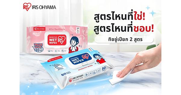 แบบที่ 1 IRIS OHYAMA Sensitive Wet Wipes (ไอริส โอยามะ เซนซิทีฟ เวท ไวพ์) สูตรอ่อนโยน (สีชมพู) อ่อนโยน ไม่ระคายเคือง สำหรับเด็กและทุกวัย มี 3 ขนาด ขนาด 20 แผ่น ราคา 28 บาท, ขนาด 80 แผ่น ราคา 99 บาท, ขนาด 120 แผ่น ราคา 129 บาท และ ขนาดใหม่ 120 แผ่น ราคา 129 บาท