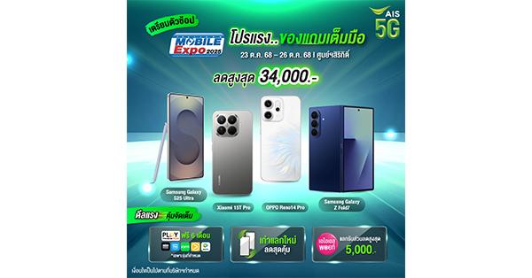 AIS พร้อมพาร์ทเนอร์เตรียมจัดเต็มความพิเศษเพื่อส่งมอบประสบการณ์ที่ดีที่สุดให้กับลูกค้า และคนไทยทุกคน ในมหกรรมมือถือที่ใหญ่ที่สุดในประเทศ Thailand Mobile Expo 2025 พร้อมโปรโมชั่นและส่วนลดทั้ง Apple และสมาร์ทโฟน Android เรือธงรุ่นฮิต ลดสูงสุด 34,000 บาท ระหว่างวันที่ 23 – 26 ตุลาคม 2568 ณ บูธ PL10 ศูนย์การประชุมแห่งชาติสิริกิติ์