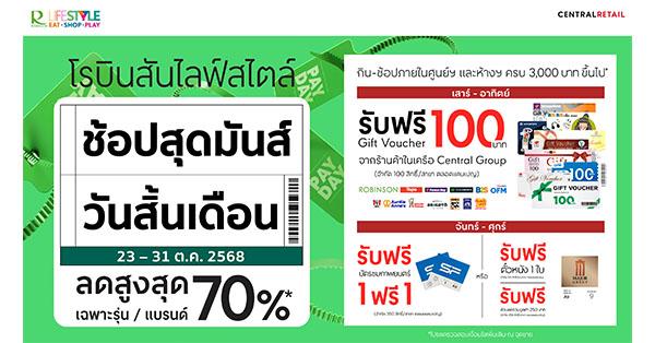 เตรียมสนุกกับโมเมนต์ความสุขแห่งการช้อปไปกับแคมเปญ “ช้อปสุดมันส์ วันสิ้นเดือน” ตั้งแต่วันที่ 23 ต.ค. 68 – 31 ต.ค. 68 ที่โรบินสันไลฟ์สไตล์ทุกสาขาทั่วประเทศ