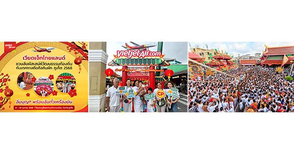 ในปีนี้ เวียตเจ็ทไทยแลนด์ได้ร่วมสร้างสีสันในประเพณีถือศีลกินผักจังหวัดภูเก็ตประจำปี 2568 ด้วยบูธกิจกรรมพิเศษ บริเวณซุ้มประตูบริเวณสี่แยกศาลเจ้าบางเหนียว ให้ผู้ร่วมงานได้ร่วมอิ่มบุญพร้อมลุ้นโชคไปกับกิจกรรม ‘Snap & Share’ เพียงถ่ายภาพคู่กับซุ้มประตูเวียตเจ็ทไทยแลนด์ และโพสต์ลงช่องทางโซเชียลมีเดีย พร้อมติดแฮชแท็ก #เที่ยวภูเก็ตอิ่มบุญสุขใจ #VietjetThailand #เวียตเจ็ทตัวจริงสุวรรณภูมิ #meatzeroกินดีได้ดีกินโปรตีนดีจากพืช เพื่อรับเมนูแพลนต์เบสจากซีพี 1 เมนู พร้อมสิทธิ์ลุ้นรับของที่ระลึกจากพาร์ทเนอร์ และรางวัลใหญ่ ตั๋วเครื่องบินไป–กลับภายในประเทศ จากเวียตเจ็ทไทยแลนด์ วันละ 1 รางวัล ต่อด้วยความสนุกจากกิจกรรม ‘Enjoy with Fun’ เพียงกดไลก์และแชร์เพจเฟซบุ๊ก Vietjet รับทันที เวาเชอร์ส่วนลดตั๋วเครื่องบิน มูลค่า 50 บาท (จำกัด 50 สิทธิ์ต่อวัน)