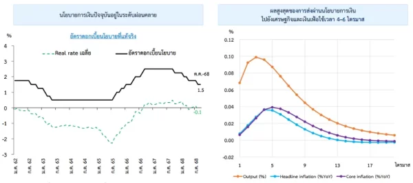- ส่วนที่สอง ธปท. มองว่าแนวโน้มอัตราเงินเฟ้อทั่วไปคาดว่าจะกลับมาเป็นบวกในไตรมาส 2 ปี 2026 และจะกลับเข้าสู่กรอบเป้าหมายนโยบายการเงิน (1.0-3.0%) ในช่วงต้นปี 2027 โดยประมาณการเงินเฟ้อทั่วไปอยู่ที่ 0.0% ในปี 2025F และ 0.5% ในปี 2026F