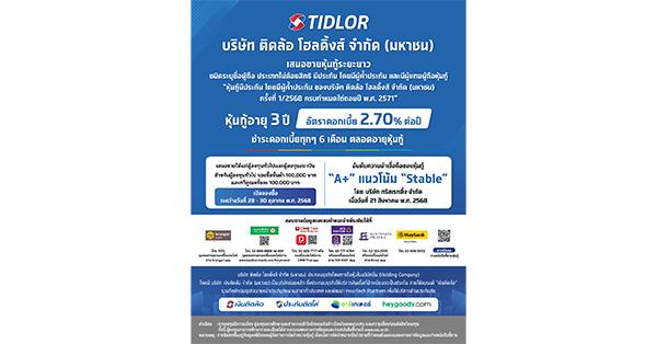 เตรียมจองซื้อก่อนเต็ม! หุ้นกู้ TIDLOR 3 ปี ดอกเบี้ย 2.70% ต่อปี เปิดจอง 28–30 ต.ค.นี้