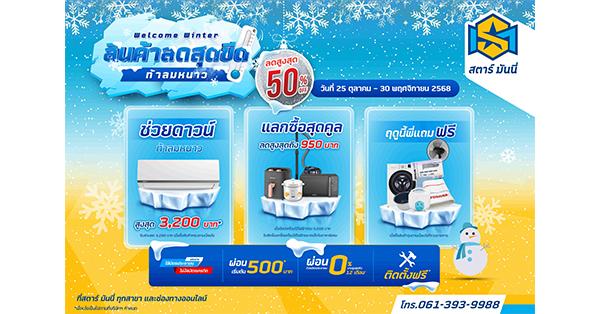 มิติหุ้น – ลมหนาวเพิ่งโผล่มา… แต่ บมจ.สตาร์ มันนี่ (STARM) ไม่รอช้า ปล่อยหมัดเด็ด “โปรรับลมหนาว” ลดเครื่องใช้ไฟฟ้าสูงสุดถึง 50% พร้อมแจกสิทธิพิเศษ ทั้งส่วนลดเงินดาวน์ และ ผ่อน 0% นาน 12 เดือน* จัดเต็มตั้งแต่ 25 ต.ค. – 30 พ.ย.นี้ ทั่วประเทศ แถมลูกค้าภาคตะวันออก ยังทำสัญญาผ่อนออนไลน์ได้จากบ้านอีกด้วย งานนี้ ทั้งออฟไลน์ และ ออนไลน์มาเต็ม! มั่นใจแคมเปญนี้จะช่วยเร่งยอดปล่อยสินเชื่อครึ่งปีหลังให้ STARM วิ่งแรงรับลมหนาวแน่นอนคร้า!!!