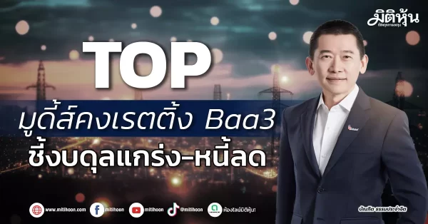 มิติหุ้น – บริษัท ไทยออยล์ จำกัด ( มหาชน) หรือ “TOP” เปิดเผยว่า เมื่อวันที่ 27 ตุลาคม 2568 “มูดี้ส์ เรตติ้ง” (Moody’s Ratings) ประกาศคงอันดับความน่าเชื่อถือผู้ออกตราสารหนี้ไม่ด้อยสิทธิ์ ไม่มีหลักประกันของบริษัท ไทยออยล์ จำกัด (มหาชน) ที่ระดับ Baa3 โดยมีแนวโน้มเครดิตเชิงลบเหมือนปัจจุบัน