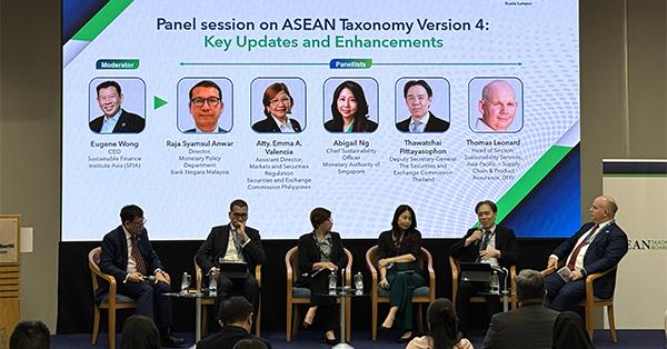 ภายในงาน นายธวัชชัย ได้รับเชิญเป็นผู้ร่วมเสวนาในหั วข้อ “ASEAN Taxonomy Version 4: Key Updates and Enhancements” โดยได้กล่าวถึงความก้าวหน้ าในการนำ ASEAN Taxonomy และ Thailand Taxonomy มาอ้างอิงในตลาดทุนไทย ซึ่งสะท้อนถึงการเปลี่ยนผ่ านจากกรอบเชิงนโยบายสู่การปฏิบั ติจริง โดยตราสารหนี้กลุ่มความยั่งยื นเริ่มอ้างอิง taxonomy ในการกำหนดวัตถุประสงค์การใช้ เงิน (use of proceeds) ตามกรอบการระดมทุน (sustainable finance frameworks) เพื่อสร้างความน่าเชื่อถื อและโปร่งใสในการจำแนกกิจกรรมที่ เป็นมิตรต่อสิ่งแวดล้อม นอกจากนี้ ยังได้ระบุถึงมาตรการยกเว้นค่ าธรรมเนียมแบบ filing ของ ก.ล.ต. สำหรับตราสารหนี้ด้านความยั่งยื นที่อ้างอิงเกณฑ์ ASEAN Taxonomy หรือ Thailand Taxonomy และผ่านการตรวจประเมินโดยผู้ ประเมินภายนอก ซึ่งมีผลตั้งแต่วันที่ 1 มิถุนายน 2568 – 31 พฤษภาคม 2571 พร้อมทั้งเสนอแนวทางการส่งเสริ มการใช้ Taxonomy ผ่านการพัฒนาศักยภาพบุคลากรร่ วมกันในระดับภูมิภาค (capacity building) เพื่อให้ผู้ออกตราสารหนี้นำ Taxonomy มาใช้ได้จริงอย่างแพร่ หลายในอนาคต