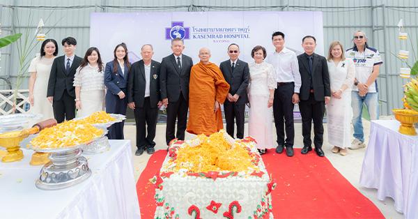 ในพิธีดังกล่าวได้รับเกียรติจาก พระเทพสิทธิเวที เจ้าคณะจังหวัดระยอง เป็นประธานในพิธี นำโดยคณะผู้บริหาร ศ.ดร.นพ.เฉลิม หาญพาณิชย์ กรรมการบริษัท ประธานกรรมการบริหาร และประธานเจ้าหน้าที่บริหาร ผศ.ดร.พญ.สมพร หาญพาณิชย์ ประธานกรรมการบริษัทและรองประธานเจ้าหน้าที่บริหาร พญ.พรลักษณ์ หาญพาณิชย์ รองกรรมการผู้จัดการฝ่ายปฏิบัติการ คุณกันตพร หาญพาณิชย์ รองกรรมการผู้จัดการฝ่ายการตลาด คุณพรสุดา หาญพาณิชย์, C.P.S. รองกรรมการผู้จัดการฝ่ายการเงิน คุณพินิจ หาญพาณิชย์ กรรมการ คุณแก้มบุ๋ม ปรียาดา สิทธาไชย และทพญ.กนกรัสม์ ฉันทแดนสุวรรณ กรรมการบริษัทในเครือ พร้อมทั้ง ได้รับเกียรติจาก คุณกัฬชัย เทพวรชัย รองผู้ว่าราชการจังหวัดระยอง คุณสาธิต ปิตุเตชะ อดีตรัฐมนตรีช่วยว่าการกระทรวงสาธารณสุข คุณปิยะ ปิตุเตชะ นายกองค์การบริหารส่วนจังหวัดระยอง นายแพทย์สุรวิทย์ ศักดานุภาพ นายแพทย์สาธารณสุขจังหวัดระยอง นายบุญยืน เลาหวิทยะรัตน์ เลขาธิการหอการค้าจังหวัดระยอง และแขกผู้มีเกียรติอีกมากมายได้ร่วมเป็นเกียรติในพิธี ณ บริเวณพื้นที่ก่อสร้างโรงพยาบาล