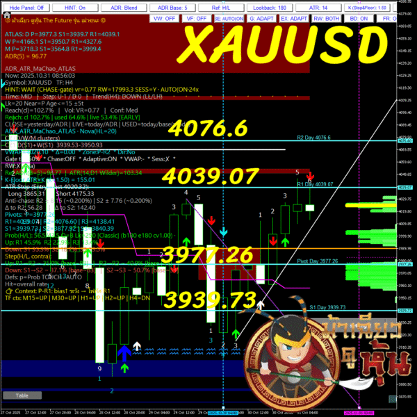 | Pivot Day | 3977.3 | “แกนสมดุล” – ราคาปิดใกล้จุดนี้มาก = พักตัว |