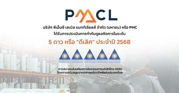 บริษัท พีเอ็มซี เลเบิล แมททีเรียลส์ จำกัด (มหาชน) หรือ PMC ผู้ประกอบธุรกิจผลิตและจำหน่ายผลิตภัณฑ์สติ๊กเกอร์เปล่า (Sticker) หรือฉลากกาว (Self-Adhesive Label) ซึ่งเป็นวัตถุดิบต้นน้ำสำหรับการผลิตฉลากสินค้าและฉลากบรรจุภัณฑ์ โดยจำหน่ายให้แก่ลูกค้าทั้งในประเทศและต่างประเทศ โชว์ศักยภาพความเป็นเลิศด้านการดำเนินงาน ได้รับคะแนนการประเมินการกำกับดูแลกิจการในระดับ 5 ดาว หรือ “ดีเลิศ” (Excellent CG Scoring) และติดอันดับ Top Quartile ของกลุ่มบริษัทที่มีมูลค่าตลาดไม่เกิน 1,500 ล้านบาท จากโครงการสำรวจการกำกับดูแลกิจการบริษัทจดทะเบียนไทย (CGR) ประจำปี 2568 ซึ่งจัดขึ้นโดยสมาคมส่งเสริมสถาบันกรรมการบริษัทไทย (IOD) ภายใต้การสนับสนุนของตลาดหลักทรัพย์แห่งประเทศไทย และสำนักงานคณะกรรมการกำกับหลักทรัพย์และตลาดหลักทรัพย์ (ก.ล.ต.)