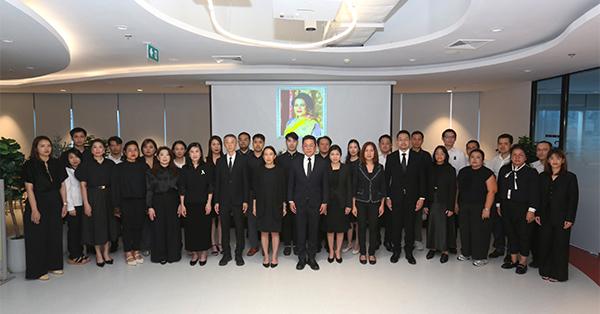 โดยประธานในพิธีได้ลงนาม และนำกล่าวน้อมฯ ถวายความอาลัย พร้อมเชิญคณะผู้บริหารและพนักงานยืนสงบนิ่งเป็นเวลา 93 วินาที เพื่อรำลึกถึงพระมหากรุณาธิคุณอย่างหาที่สุดมิได้  ภายหลังการยืนสงบนิ่ง ประธานในพิธีเป็นตัวแทนพนักงาน วางพวงมาลัยถวายความอาลัยเบื้องหน้าพระฉายาลักษณ์