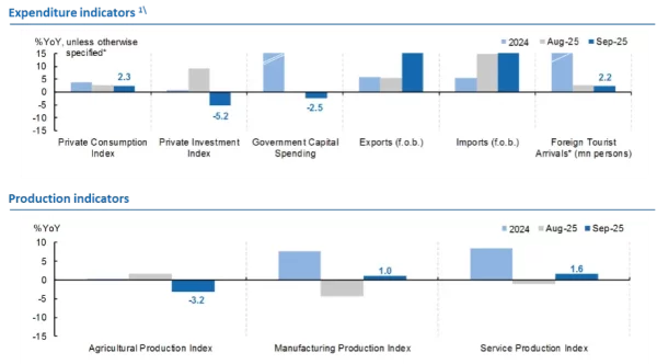 TISCO ESU ชี้เศรษฐกิจไทยในเดือน ก.ย. ปรับดีขึ้นจากเดือนก่อน แรงหนุนจากการฟื้นตัวของภาคการผลิต หลังปัจจัยชั่วคราวคลี่คลาย ขณะที่อุปสงค์ในประเทศ ทั้งการบริโภค และการลงทุนภาคเอกชนชะลอตัวลง