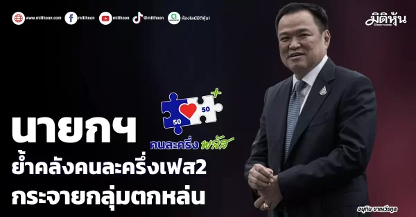 มิติหุ้น – นายกฯ ฝากกระทรวงการคลัง หาวิธีให้กลุ่มเปราะบาง และตกหล่น ได้สิทธิร่วม “คนละครึ่งพลัส” เฟส 2 หลังเฟสแรกคึกคัก เม็ดเงินจับจ่ายกระจายทั่วประเทศ