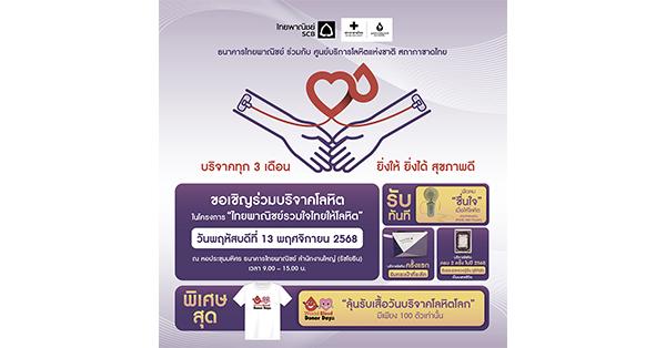 มิติหุ้น – กลุ่มเอสซีบีเอกซ์ โดยธนาคารไทยพาณิชย์ ร่วมกับ ศูนย์บริการโลหิตแห่งชาติ สภากาชาดไทย ขอเชิญร่วมบริจาคโลหิต เติมเต็มปริมาณโลหิตสำรองคงคลัง ภายใต้โครงการ “ไทยพาณิชย์รวมใจไทยให้โลหิต” ในวันพฤหัสบดีที่ 13 พฤศจิกายน 2568 เวลา 9.00-15.00 น. ณ หอประชุมมหิศร ธนาคารไทยพาณิชย์ สำนักงานใหญ่ (รัชโยธิน) เพื่อส่งต่อโลหิตที่มีคุณภาพให้มีเพียงพอต่อการรักษาพยาบาลผู้ป่วยทั่วประเทศ ยังมีผู้ป่วยจำนวนมากที่กำลังรอรับโลหิตเพื่อต่อลมหายใจ การบริจาคโลหิต 1 ครั้ง สามารถนำไปช่วยชีวิตผู้ป่วยได้มากกว่า 3  ชีวิต สำหรับผู้ที่บริจาคโลหิตครั้งแรกรับทันทีกระเป๋าที่ระลึก บริจาคโลหิตครบ 2 ครั้งในปี 2568 รับพระผงหลวงปู่มั่น ภูริทตฺโต เป็นมงคลชีวิต และ 500 ท่านแรกที่ร่วมบริจาคโลหิต รับพัดลม “ชื่นใจ” แทนคำขอบคุณ พร้อมลุ้นรับเสื้อวันบริจาคโลหิตโลกมีเพียง 100 ตัวเท่านั้น