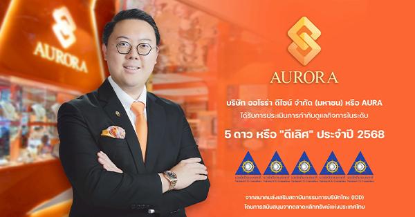มิติหุ้น – บริษัท ออโรร่า ดีไซน์ จำกัด (มหาชน) หรือ AURA ผู้นำธุรกิจค้าปลีกทองคำและธุรกิจขายฝาก ทองมาเงินไป ได้รับผลการประเมินการกำกับดูแลกิจการของบริษัทจดทะเบียนไทย ประจำปี 2568 (Corporate Governance Report of Thai Listed Companies: CGR 2025) ในระดับ “ดีเลิศ” หรือ 5 ดาว (Excellent CG Scoring) ต่อเนื่องเป็นปีที่ 2 จาก สมาคมส่งเสริมสถาบันกรรมการบริษัทไทย (IOD) โดยได้รับการสนับสนุนจาก ตลาดหลักทรัพย์แห่งประเทศไทย และ สำนักงานคณะกรรมการกำกับหลักทรัพย์และตลาดหลักทรัพย์ (ก.ล.ต.)