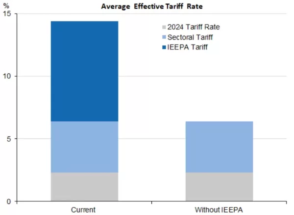 - นอกจากนี้ ยังมีมาตรา 122 ที่อนุญาติให้ปธน. สหรัฐฯ สามารถบังคับใช้ภาษีศุลกากรในอัตรามากสุดที่ 15% หรือจำกัดโควตานำเข้าเป็นเวลา 150 วัน กับประเทศที่เกินดุลการชำระเงินกับสหรัฐฯ ในระดับสูง ซึ่งการประกาศใช้มาตรานี้ไม่จำเป็นต้องมีการสืบสวนสอบสวน เพราะฉะนั้น อาจสามารถใช้ทดแทนกับการใช้ IEEPA ได้ชั่วคราว