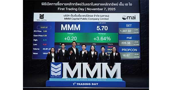 นางสาวณิชา โรจน์วัฒนา ประธานเจ้าหน้าที่บริหาร บมจ.เอ็มเอ็มเอ็ม แคปปิตอล หรือ MMM เปิดเผยว่า วันนี้ (7 พ.ย.68) บริษัทฯ ได้นำหุ้น MMM เข้าซื้อขายในตลาดหลักทรัพย์เอ็ม เอ ไอ เป็นวันแรก หลังจากที่บริษัทฯ ได้มีการเสนอขายหุ้นสามัญให้กับประชาชนทั่วไป (PO) จำนวน 64.2 ล้านหุ้น ในราคาหุ้นละ 5.50 บาท ระหว่างวันที่ 28 – 30 ตุลาคม 2568 ที่ผ่านมา ซึ่งได้การตอบรับที่ดีจากนักลงทุน สะท้อนความเชื่อมั่นในพื้นฐานทางธุรกิจที่แข็งแกร่ง และศักยภาพการเติบโตในอนาคต สู่การเป็นผู้นำในด้านการเป็นผู้ให้บริการด้านตัวแทนการขายอสังหาริมทรัพย์อย่างครบวงจรตามวิสัยทัศน์ที่วางไว้ ควบคู่กับการสร้างการเติบโตอย่างยั่งยืน และสร้างผลตอบแทนที่ดีให้กับผู้ถือหุ้น ที่สำคัญ MMM ถือได้ว่าเป็นบริษัทนายหน้าอสังหาริมทรัพย์ ที่ดำเนินธุรกิจเป็นตัวแทนขายที่อยู่อาศัยประเภทบ้าน และ คอนโดมิเนียม มือ 1 รายแรก ที่เข้าจดทะเบียนในตลาดหลักทรัพย์แห่งประเทศไทย