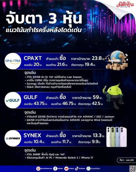 จับตา 3 หุ้น แนวโน้มกำไรครึ่งหลังโดดเด่น
