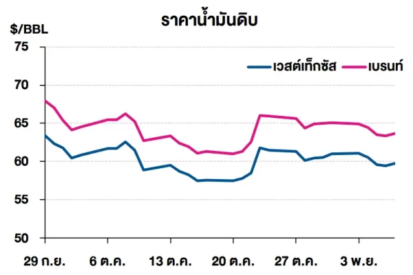 (-) อย่างไรก็ตาม ราคาน้ำมันถูกกดดันจากคำสั่งลดเที่ยวบินหลายพันเที่ยวบินของสำนักงานการบินพลเรือนของสหรัฐฯ จากปัญหาขาดแคลนเจ้าหน้าที่ควบคุมการบิน หลังเจ้าหน้าที่หลายรายหยุดปฏิบัติงานเนื่องจากไม่ได้รับเงินเดือนซึ่งเป็นผลกระทบจากการปิดหน่วยงานรัฐบาลสหรัฐฯ ทำให้ตลาดเกิดความกังวลว่าอุปสงค์น้ำมันจากภาคการบินจะปรับตัวลดลง