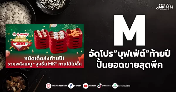 มิติหุ้น – M อัดแคมเปญ“บุฟเฟ่ต์” ต่อเนื่องล่าสุดส่งโปรโมชั่น “MK คุ้มเกินคุ้ม 299 บาท” กูรูแย้ม Bonus Suki มาแรงลุ้นผลงานแรงข้ามปี