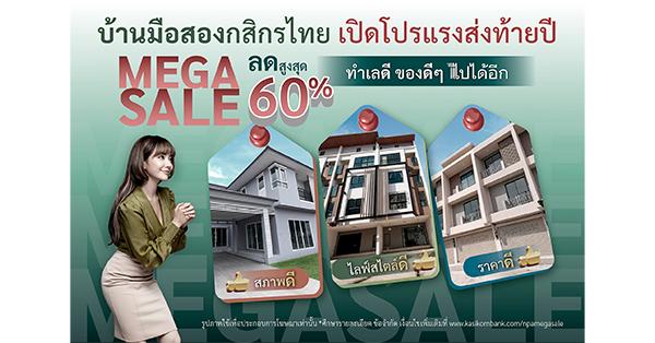 มิติหุ้น – ธนาคารกสิกรไทยจัดโปรแรงส่งท้ายปี บ้านมือสองกสิกรไทย ให้ลูกค้าทั้งกลุ่มคนอยากมีบ้าน เจ้าของกิจการหรือนักลงทุนอสังหาริมทรัพย์ กับแคมเปญใหญ่ Mega Sale ลดสูงสุด 60% คัดสรรทรัพย์คุณภาพทั่วประเทศ ทั้งบ้านเดี่ยว ทาวน์โฮม คอนโดมิเนียม และอาคารพาณิชย์ ราคาดี ทำเลดี และสภาพดี กับบ้านมือสองกสิกรไทย ของดี ๆ ไปได้อีก พร้อมสิทธิพิเศษ ฟรีค่าโอนสูงสุด 300,000 บาท* และกู้ได้สูงสุด 110%**