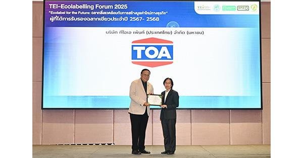 การได้รับฉลากเขียวสะท้อนถึงความมุ่งมั่นของ TOA ที่ตอกย้ำถึงเรื่องคุณสมบัติของผลิตภัณฑ์ที่เป็นมิตรต่อสิ่งแวดล้อม เป็นเครื่องยืนยันว่าผลิตภัณฑ์ของ TOA ผ่านการควบคุมคุณภาพสิ่งแวดล้อมอย่างเข้มงวด มีการจัดการความเสี่ยงด้านสิ่งแวดล้อมที่เป็นเลิศ และไม่สร้างผลกระทบต่อสิ่งแวดล้อมอย่างมีนัยสำคัญ เพราะเราเชื่อว่าการผลิตสินค้าที่เป็นมิตรต่อสิ่งแวดล้อม จะช่วยให้การเข้าถึงผลิตภัณฑ์สีเขียวเป็นเรื่องที่ง่ายขึ้น ดังนั้น “ฉลากเขียว” จึงเป็นสัญลักษณ์แห่งความเชื่อถือและไว้วางใจของผู้บริโภค ทำให้ทุกการเลือกซื้อผลิตภัณฑ์ของ TOA เท่ากับการร่วมเป็นส่วนหนึ่งของการดูแลสิ่งแวดล้อมของประเทศอย่างแท้จริง
